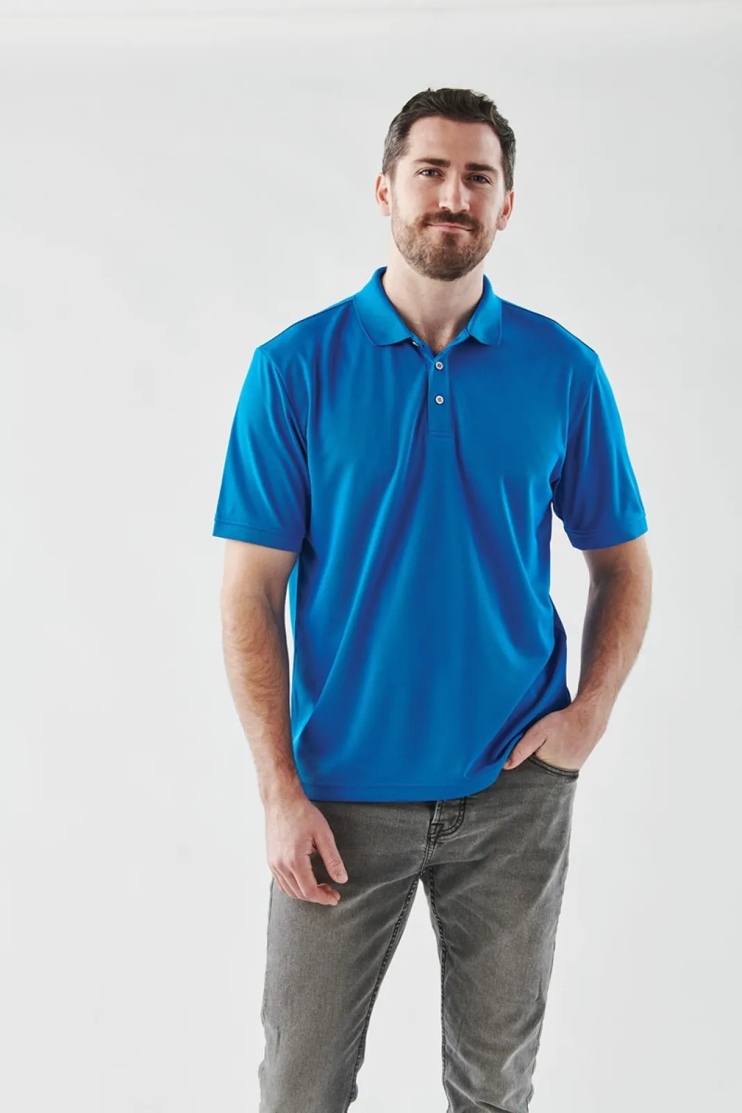 • Polo 100% polyester au fini piqué avec col en tricot côtelé.
